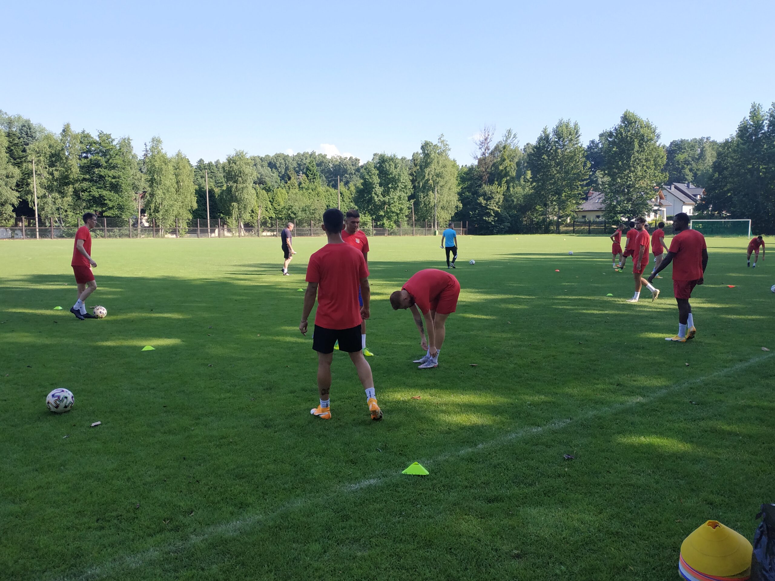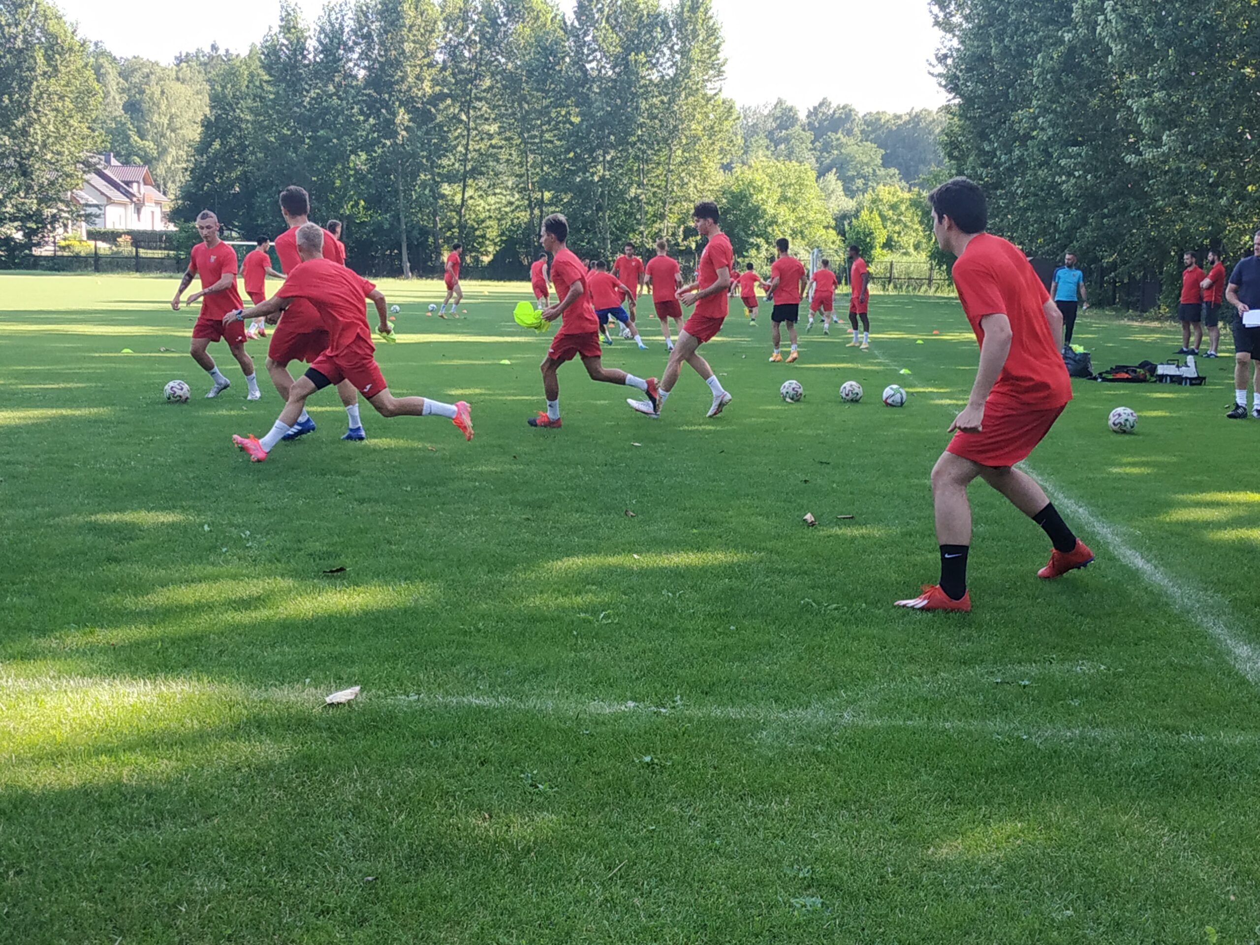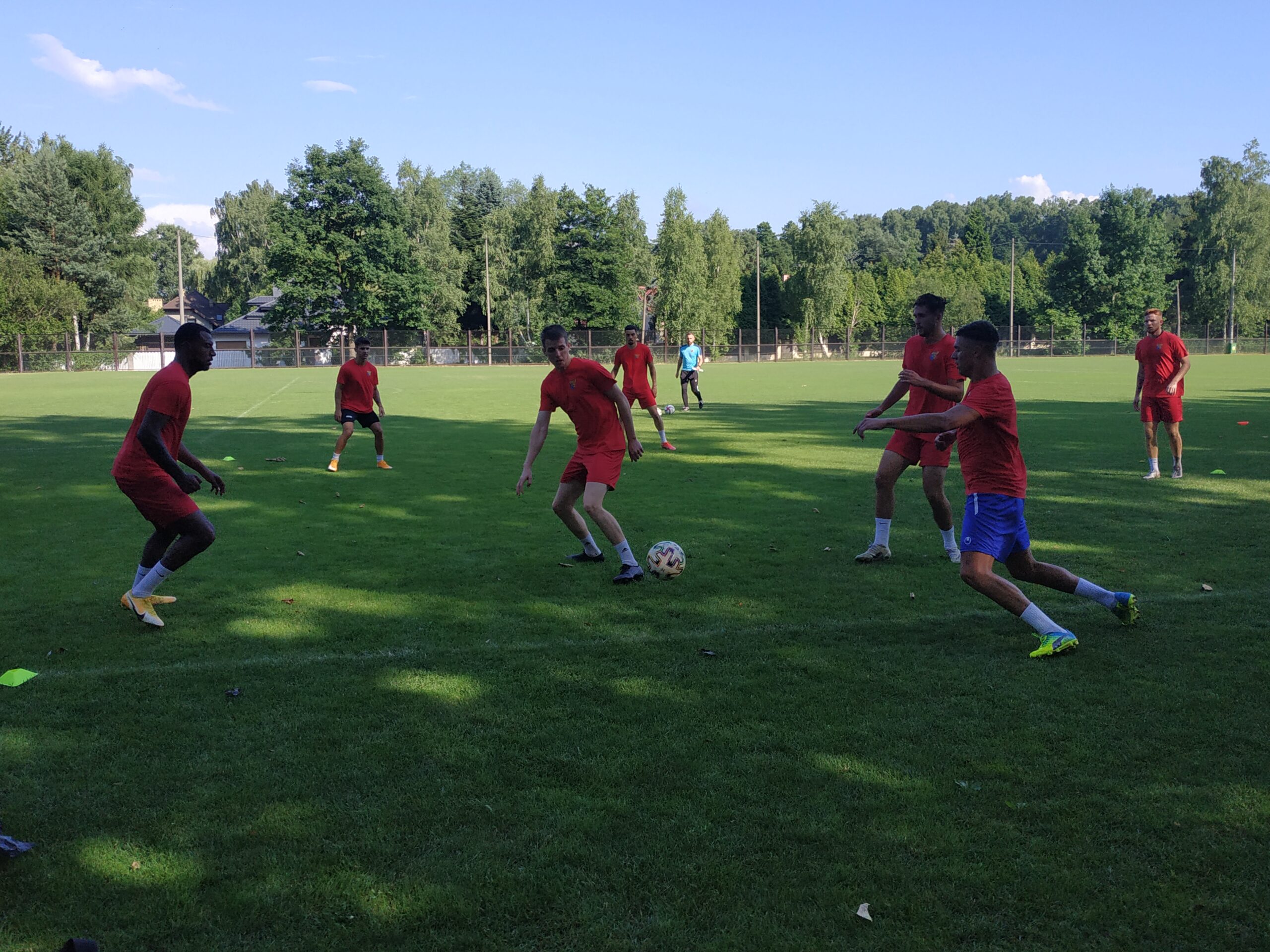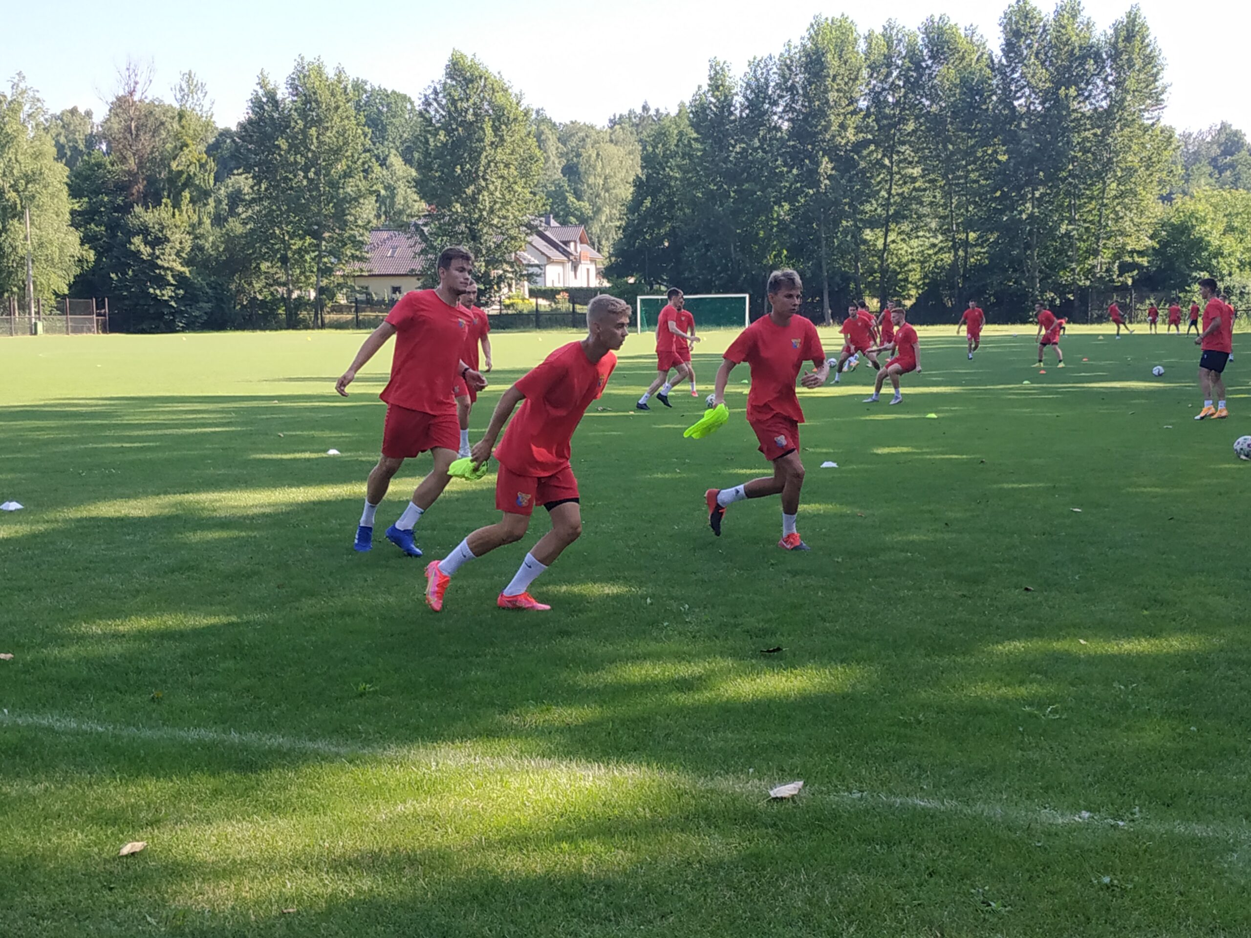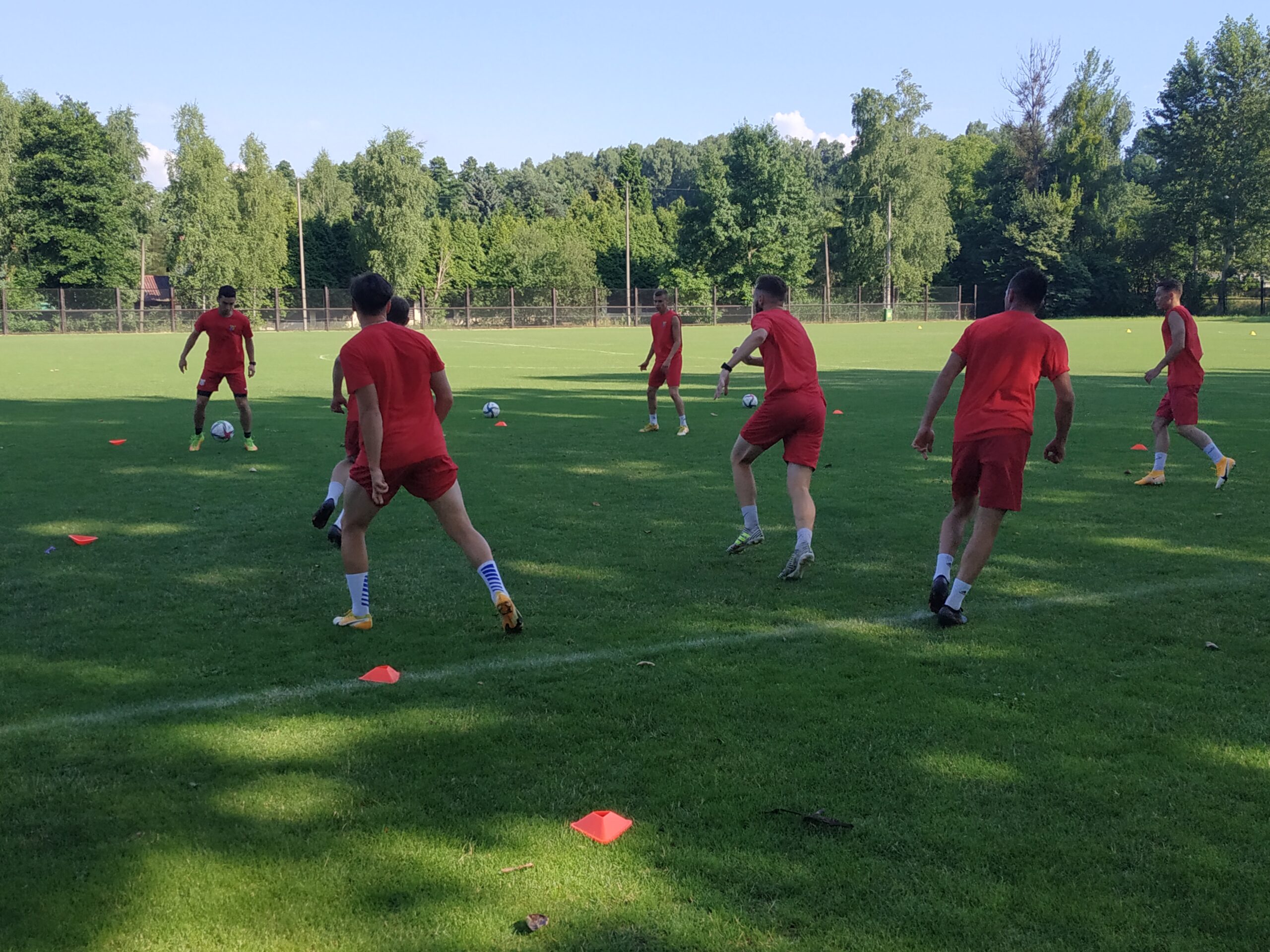 Nowy sezon zbliża się wielkimi krokami. Już 7 sierpnia piłkarze wybiegną na murawę i zainaugurują rozgrywki III ligi w sezonie 2021/22. Dziś popołudniu piłkarze Odry Wodzisław odbyli pierwszy trening po powrocie z urlopów. W dzisiejszej sesji treningowej wzięło udział 28 zawodników, w tym siedmiu bramkarzy. Na treningu obecnych było wielu zawodników, którzy w najbliższym czasie będą testowani w naszym klubie. Niebiesko-czerwoni tym samym rozpoczęli okres przygotowawczy, w którym oprócz jednostek treningowych, będą rozgrywali również mecze kontrolne. O terminarzu spotkań sparingowych będziemy na bieżąco informowali w naszych mediach społecznościowych. Zapraszamy do krótkiej galerii zdjęć, która znajduje się poniżej.