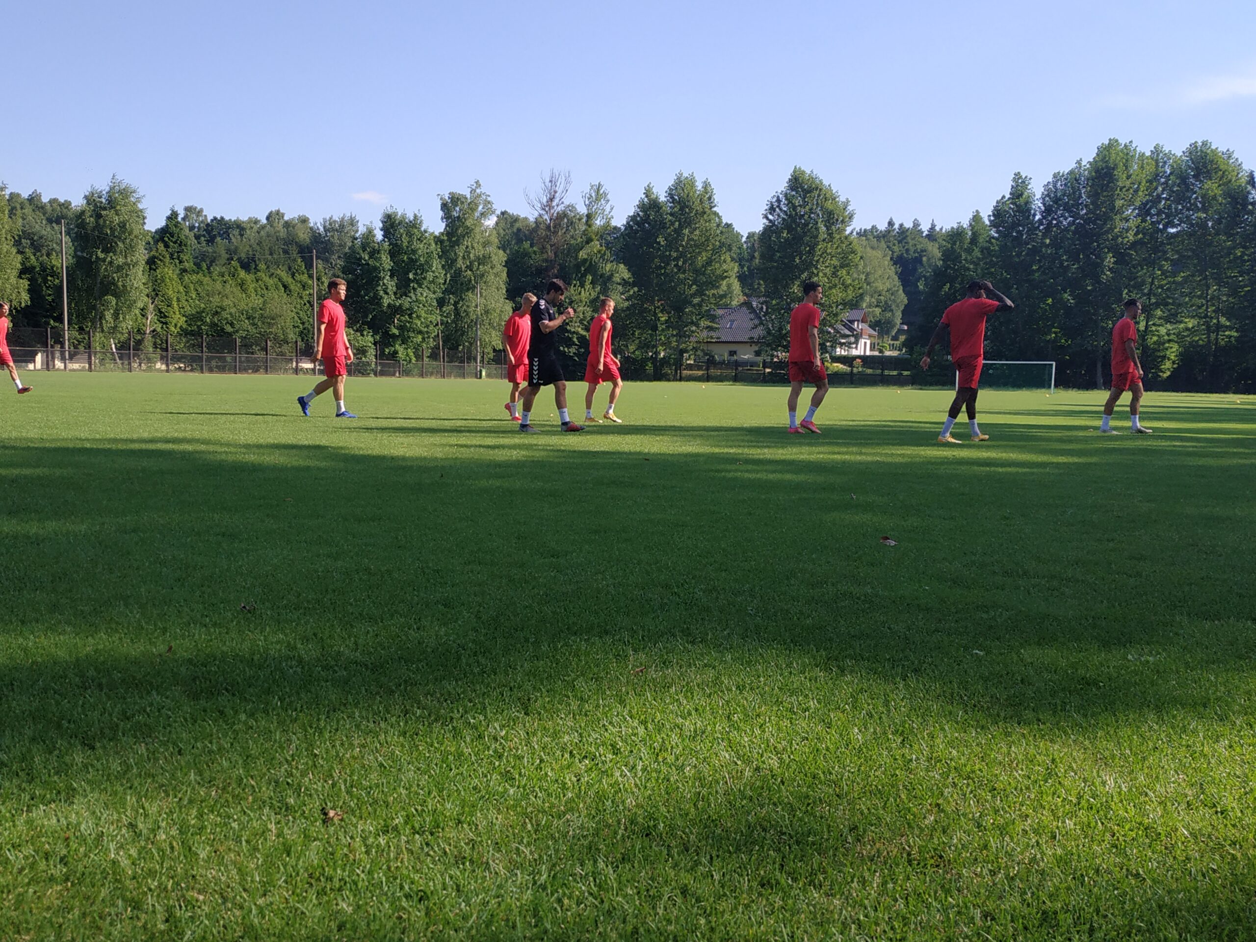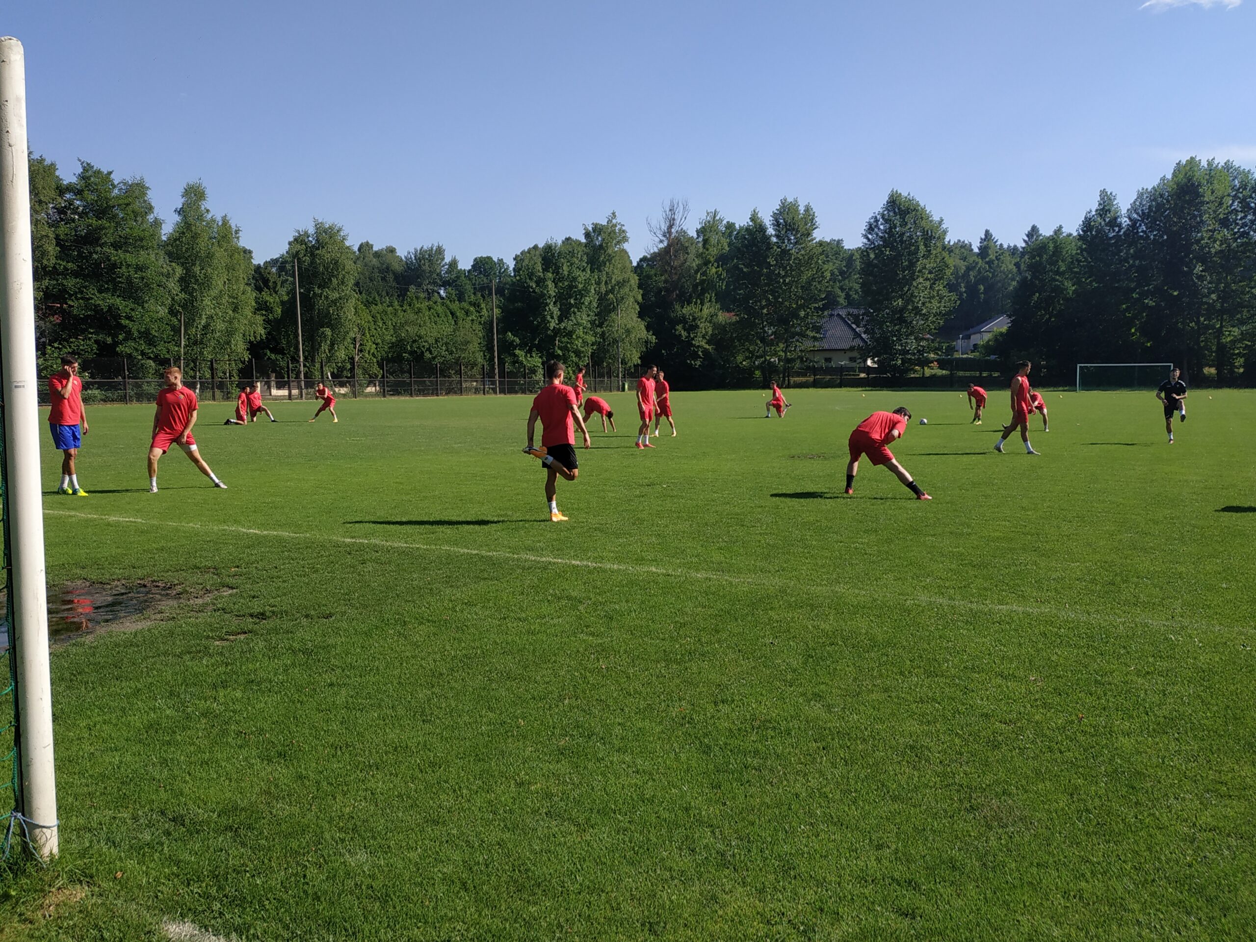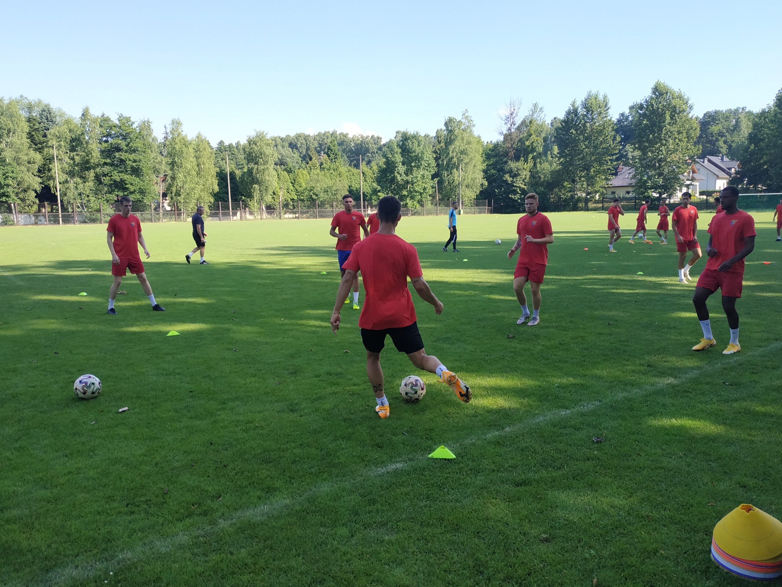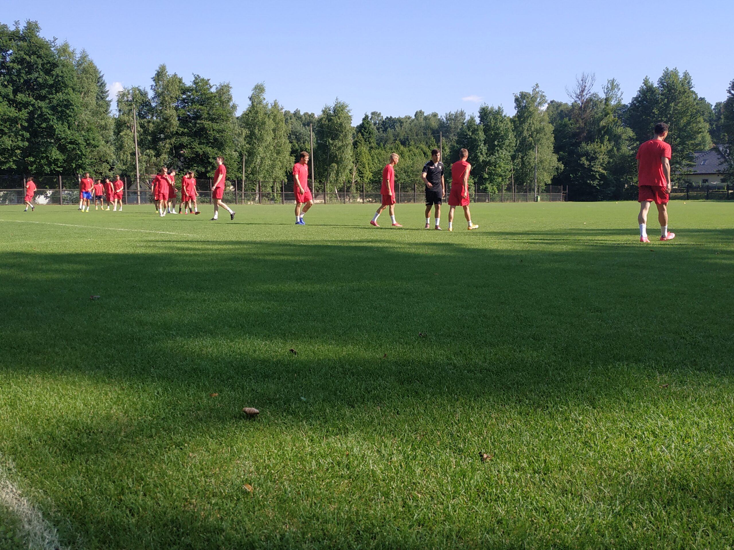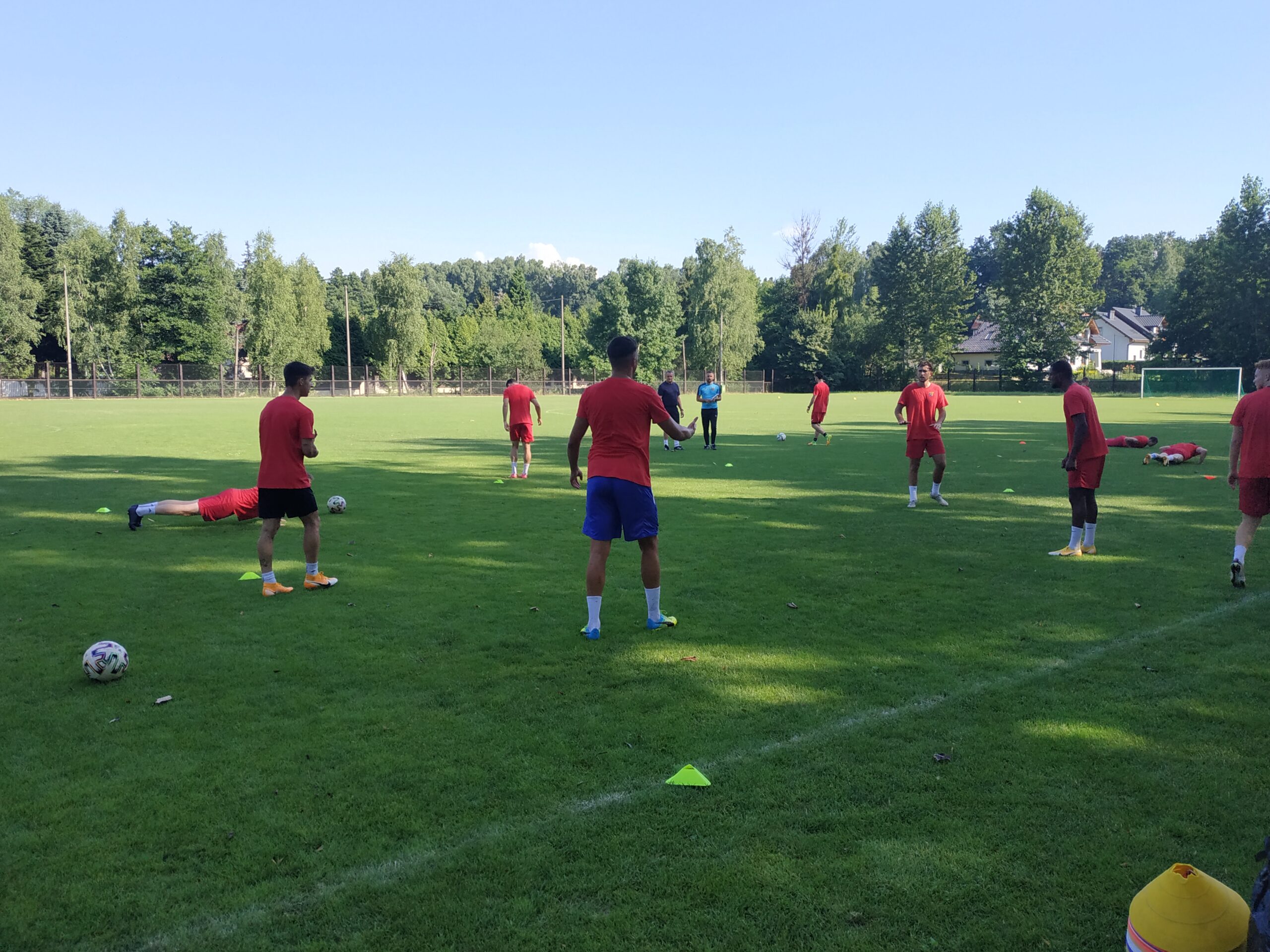 Nowy sezon zbliża się wielkimi krokami. Już 7 sierpnia piłkarze wybiegną na murawę i zainaugurują rozgrywki III ligi w sezonie 2021/22. Dziś popołudniu piłkarze Odry Wodzisław odbyli pierwszy trening po powrocie z urlopów. W dzisiejszej sesji treningowej wzięło udział 28 zawodników, w tym siedmiu bramkarzy. Na treningu obecnych było wielu zawodników, którzy w najbliższym czasie będą testowani w naszym klubie. Niebiesko-czerwoni tym samym rozpoczęli okres przygotowawczy, w którym oprócz jednostek treningowych, będą rozgrywali również mecze kontrolne. O terminarzu spotkań sparingowych będziemy na bieżąco informowali w naszych mediach społecznościowych. Zapraszamy do krótkiej galerii zdjęć, która znajduje się poniżej.