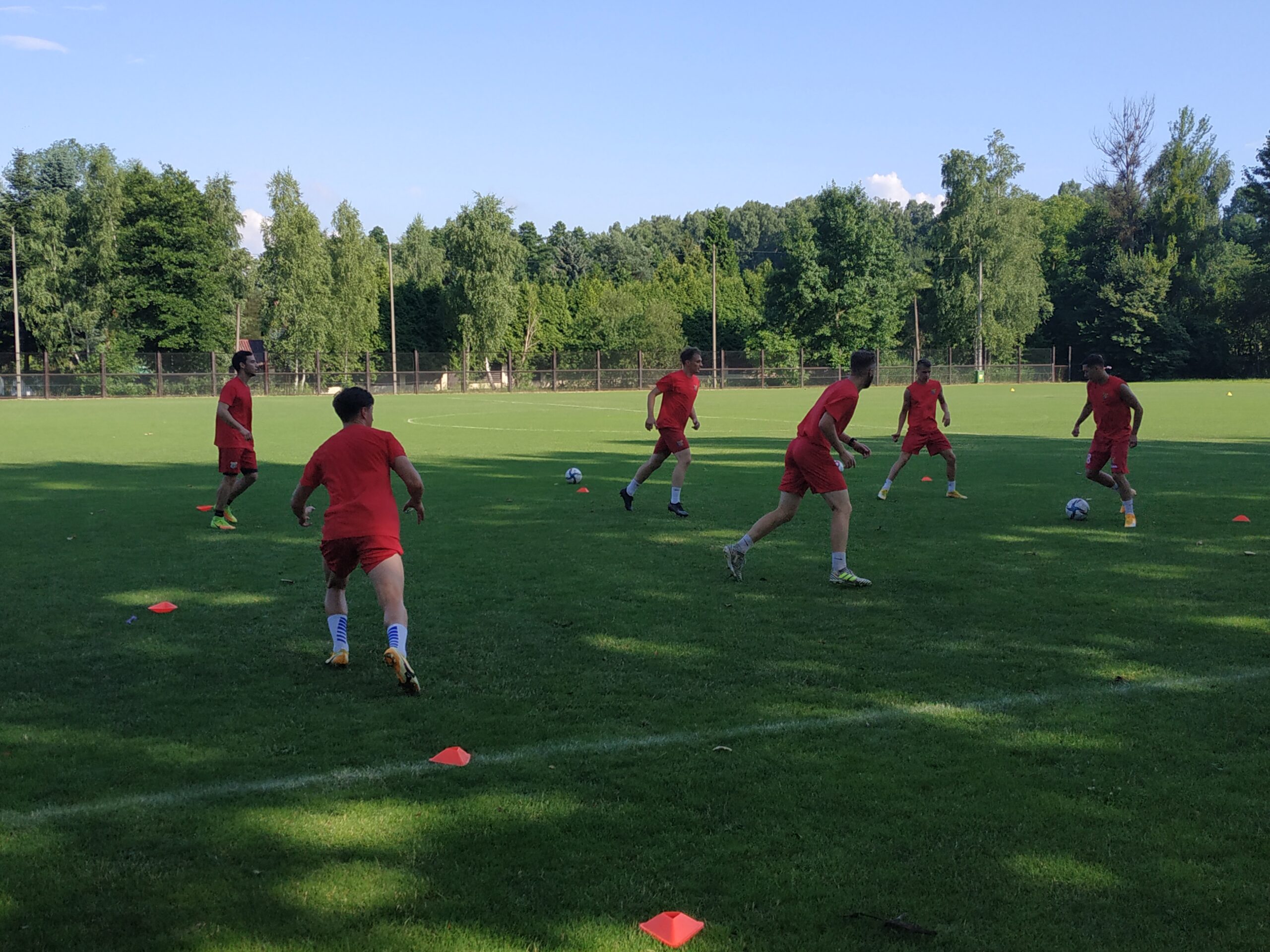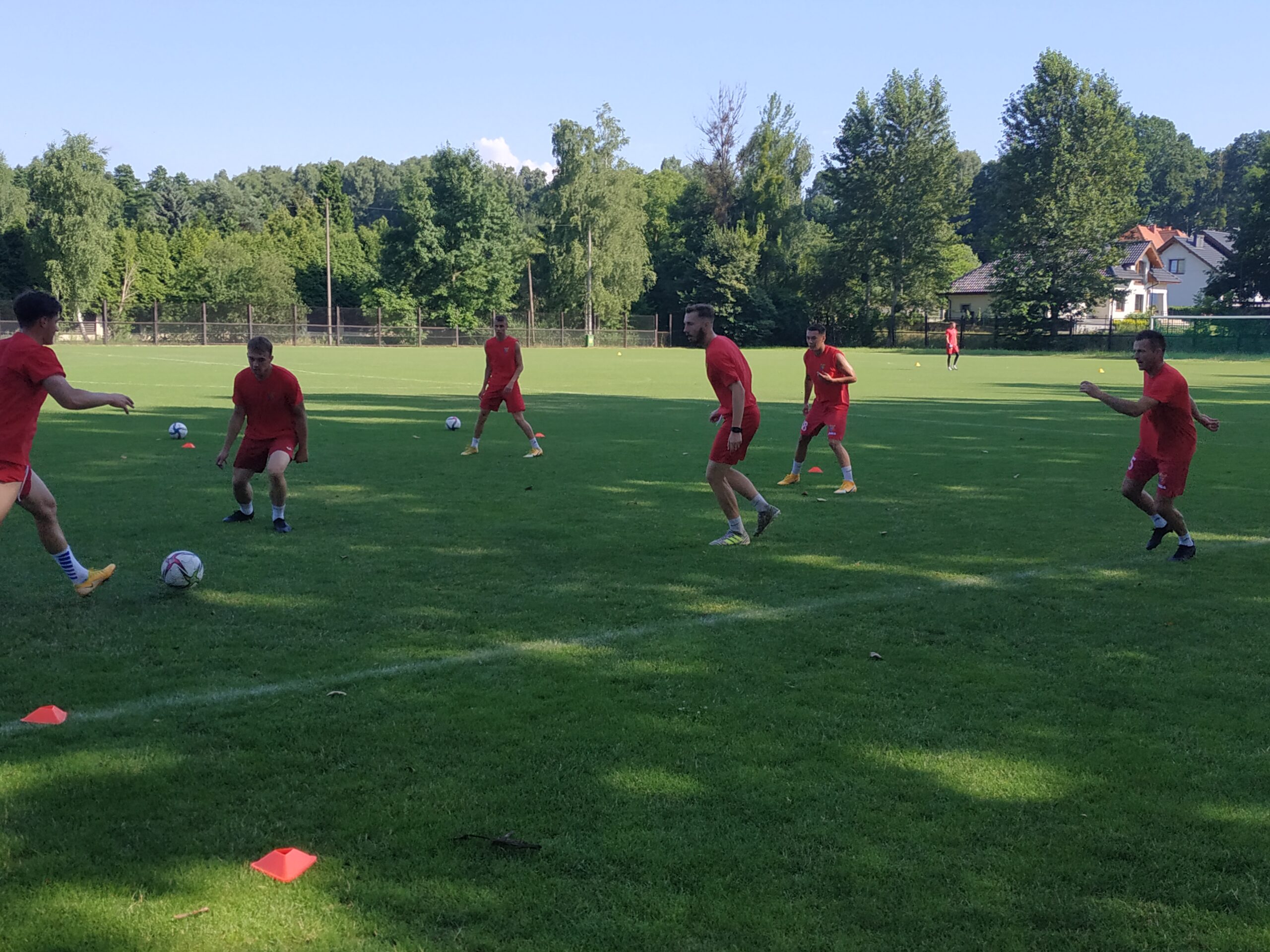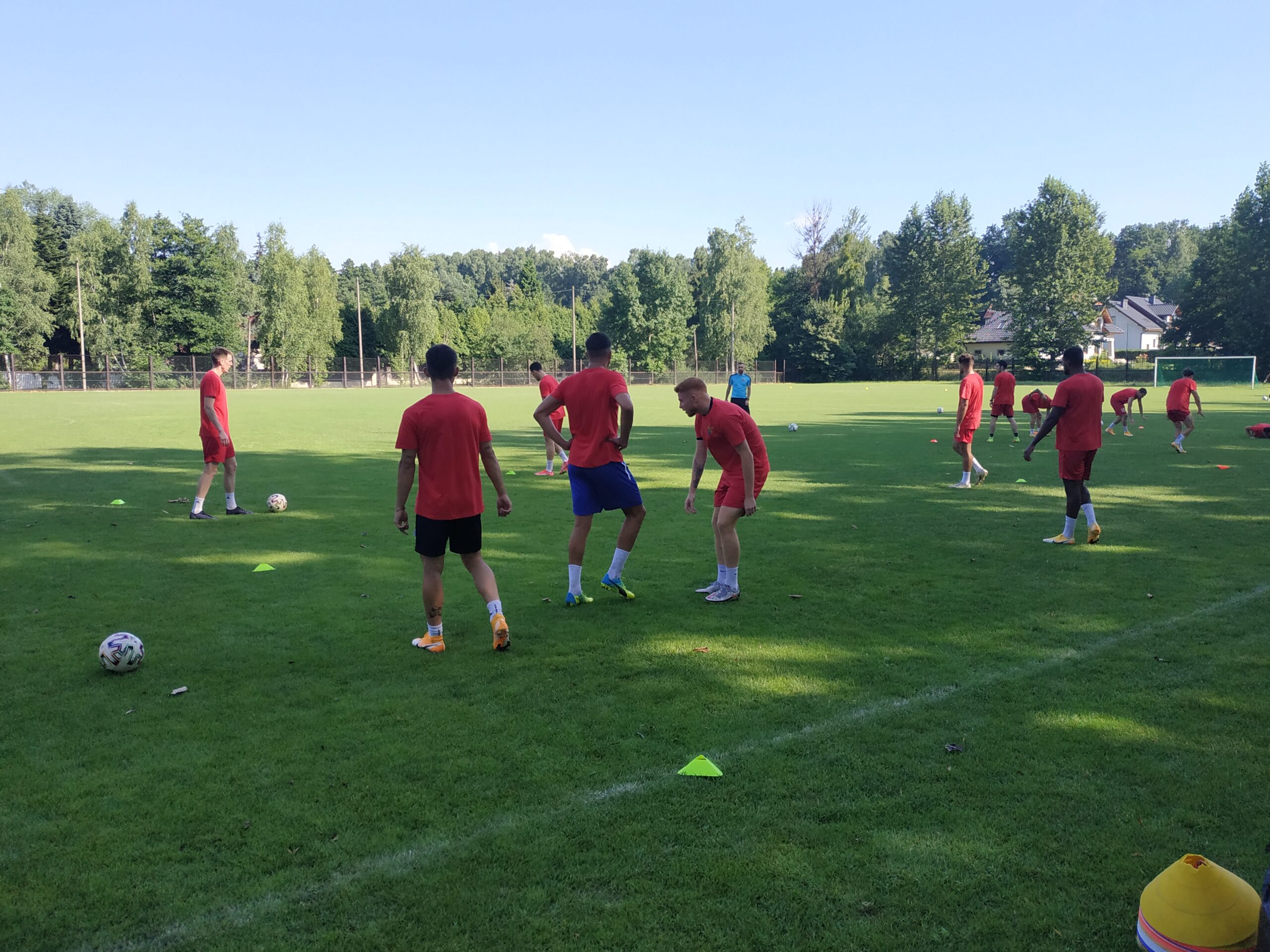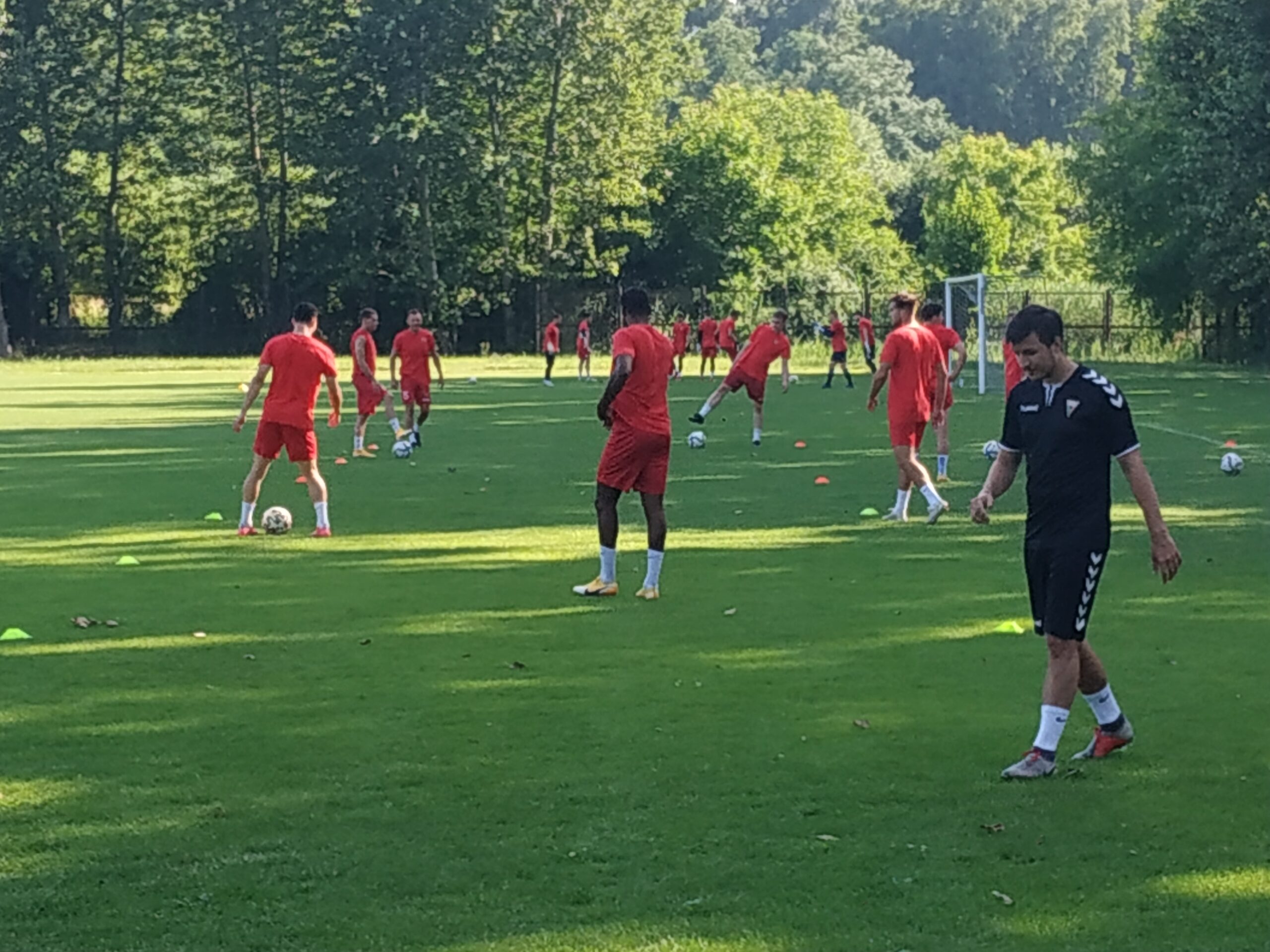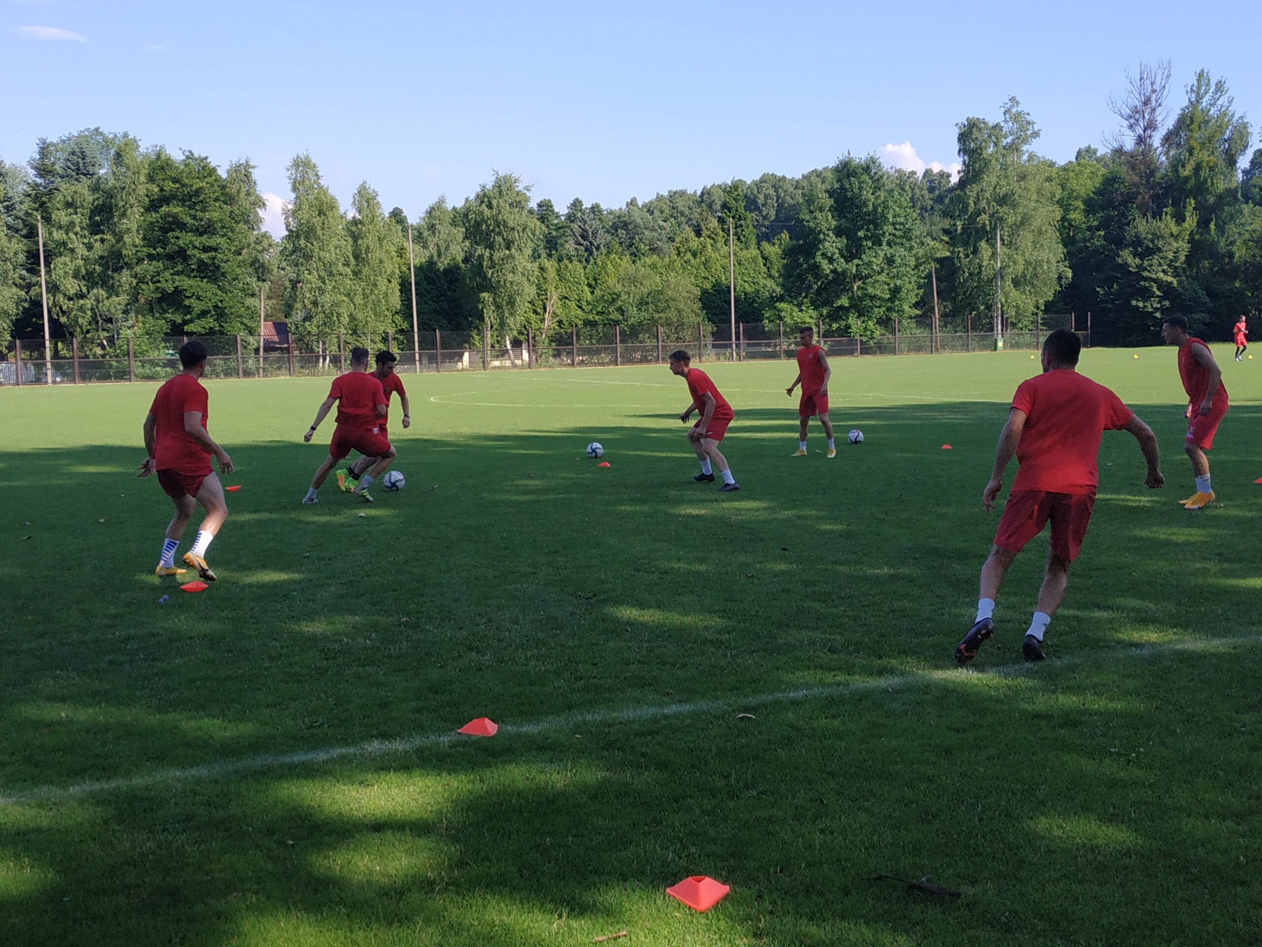 Nowy sezon zbliża się wielkimi krokami. Już 7 sierpnia piłkarze wybiegną na murawę i zainaugurują rozgrywki III ligi w sezonie 2021/22. Dziś popołudniu piłkarze Odry Wodzisław odbyli pierwszy trening po powrocie z urlopów. W dzisiejszej sesji treningowej wzięło udział 28 zawodników, w tym siedmiu bramkarzy. Na treningu obecnych było wielu zawodników, którzy w najbliższym czasie będą testowani w naszym klubie. Niebiesko-czerwoni tym samym rozpoczęli okres przygotowawczy, w którym oprócz jednostek treningowych, będą rozgrywali również mecze kontrolne. O terminarzu spotkań sparingowych będziemy na bieżąco informowali w naszych mediach społecznościowych. Zapraszamy do krótkiej galerii zdjęć, która znajduje się poniżej.