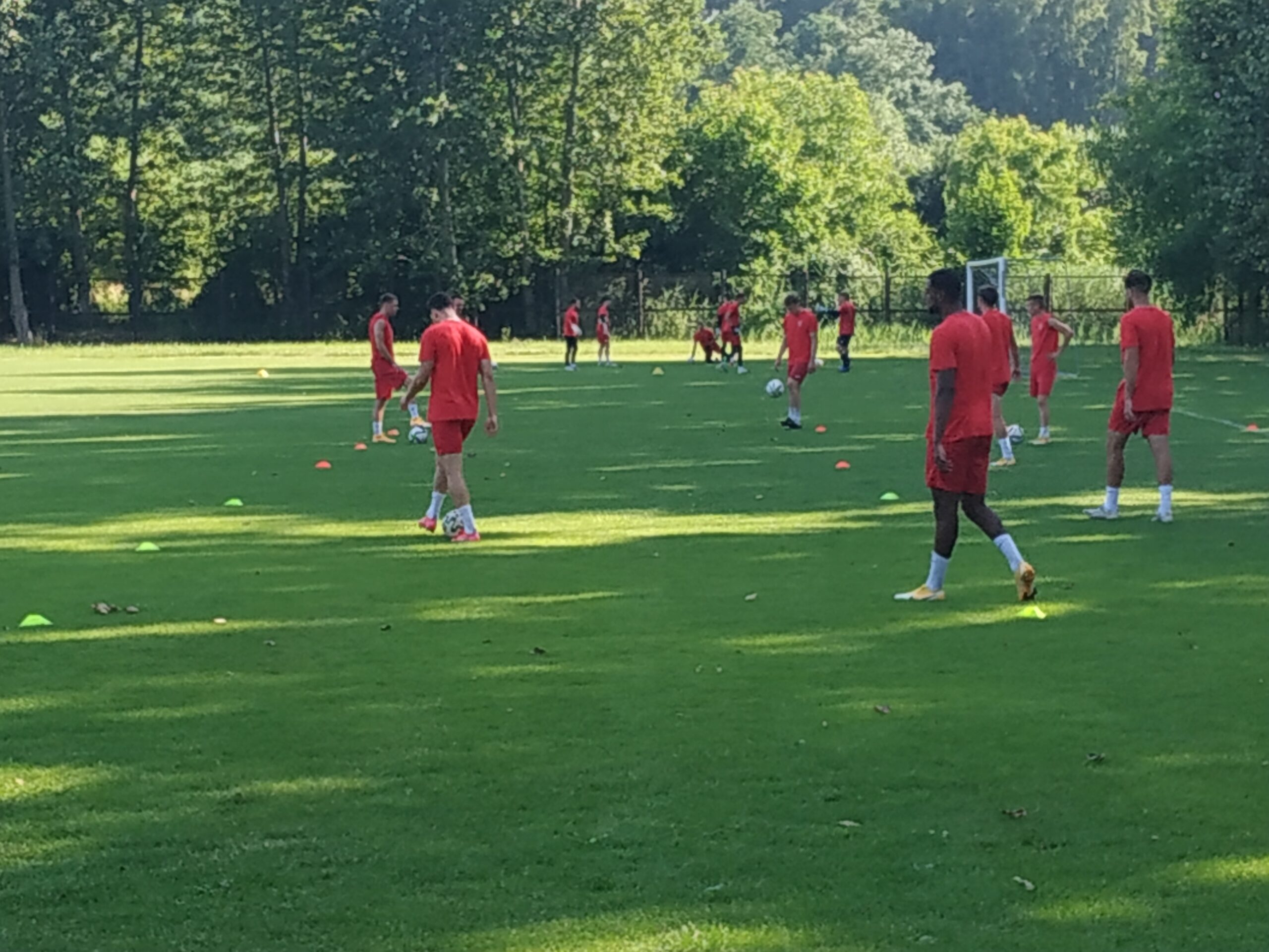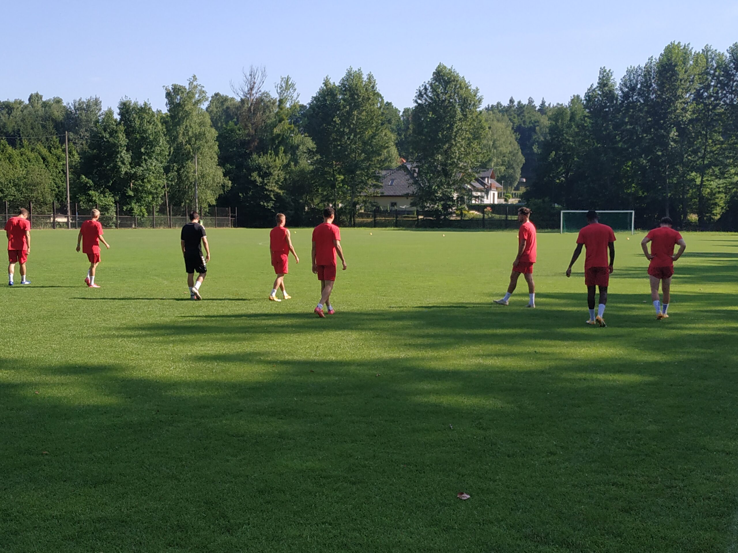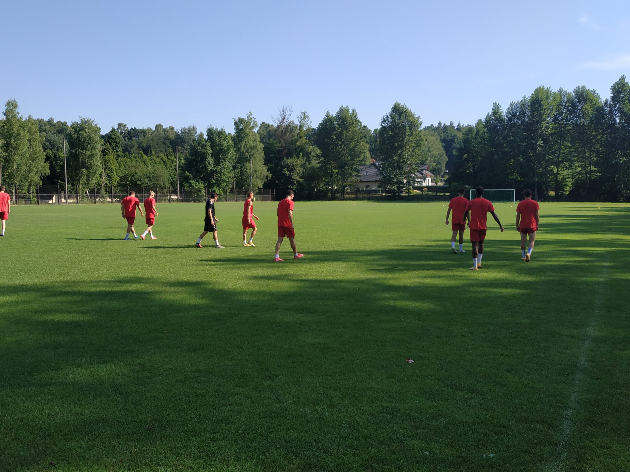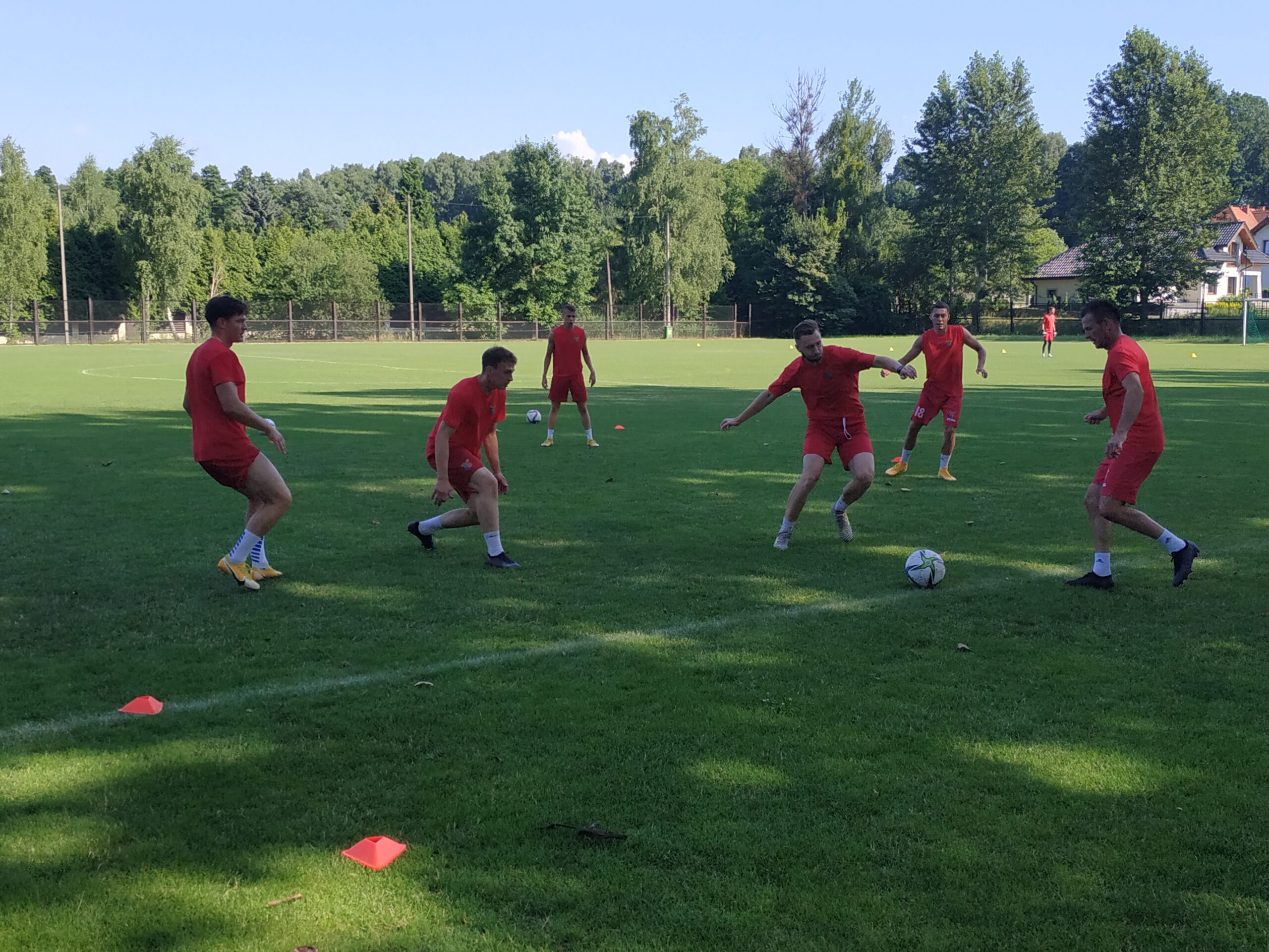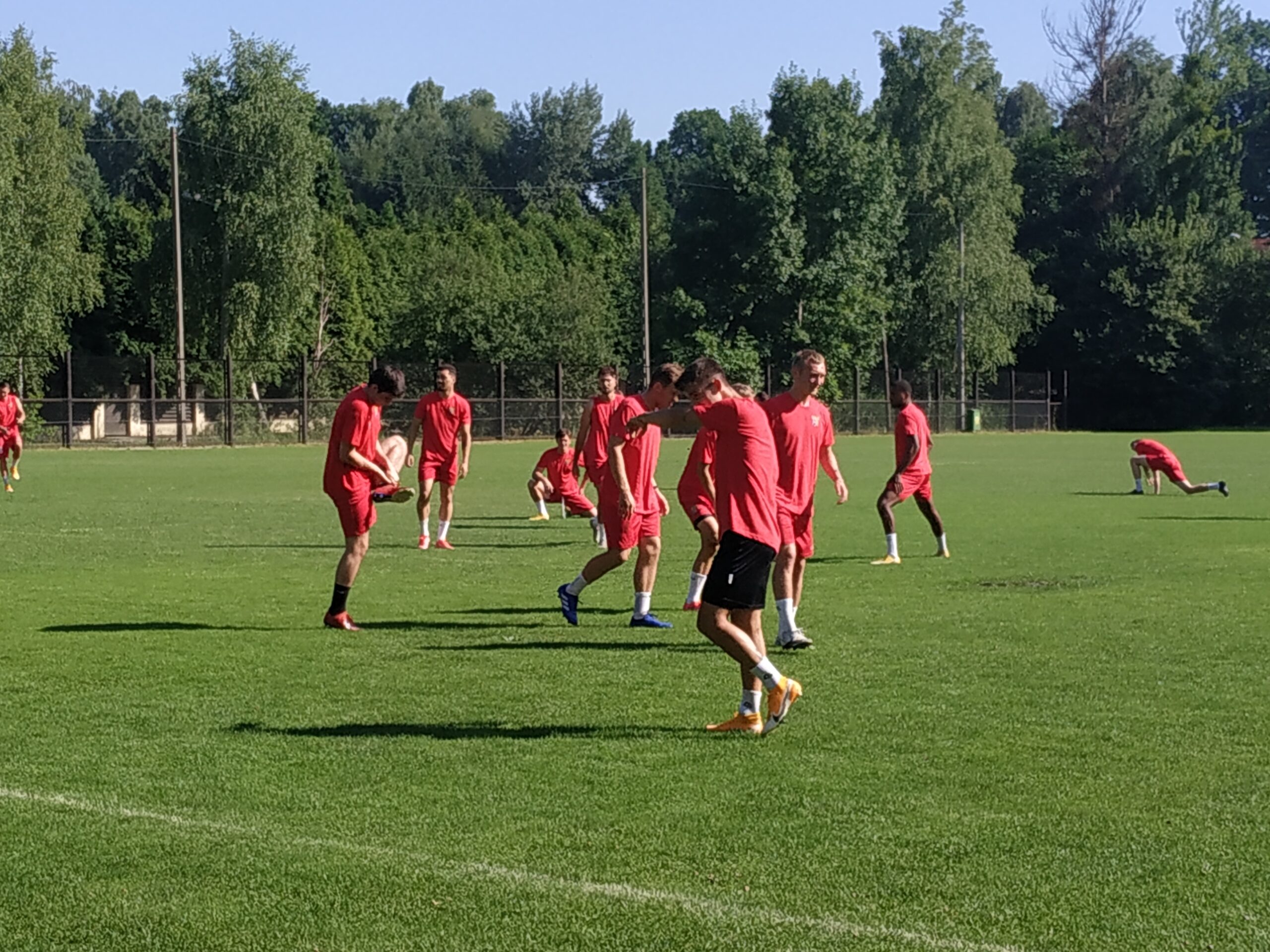 Nowy sezon zbliża się wielkimi krokami. Już 7 sierpnia piłkarze wybiegną na murawę i zainaugurują rozgrywki III ligi w sezonie 2021/22. Dziś popołudniu piłkarze Odry Wodzisław odbyli pierwszy trening po powrocie z urlopów. W dzisiejszej sesji treningowej wzięło udział 28 zawodników, w tym siedmiu bramkarzy. Na treningu obecnych było wielu zawodników, którzy w najbliższym czasie będą testowani w naszym klubie. Niebiesko-czerwoni tym samym rozpoczęli okres przygotowawczy, w którym oprócz jednostek treningowych, będą rozgrywali również mecze kontrolne. O terminarzu spotkań sparingowych będziemy na bieżąco informowali w naszych mediach społecznościowych. Zapraszamy do krótkiej galerii zdjęć, która znajduje się poniżej.