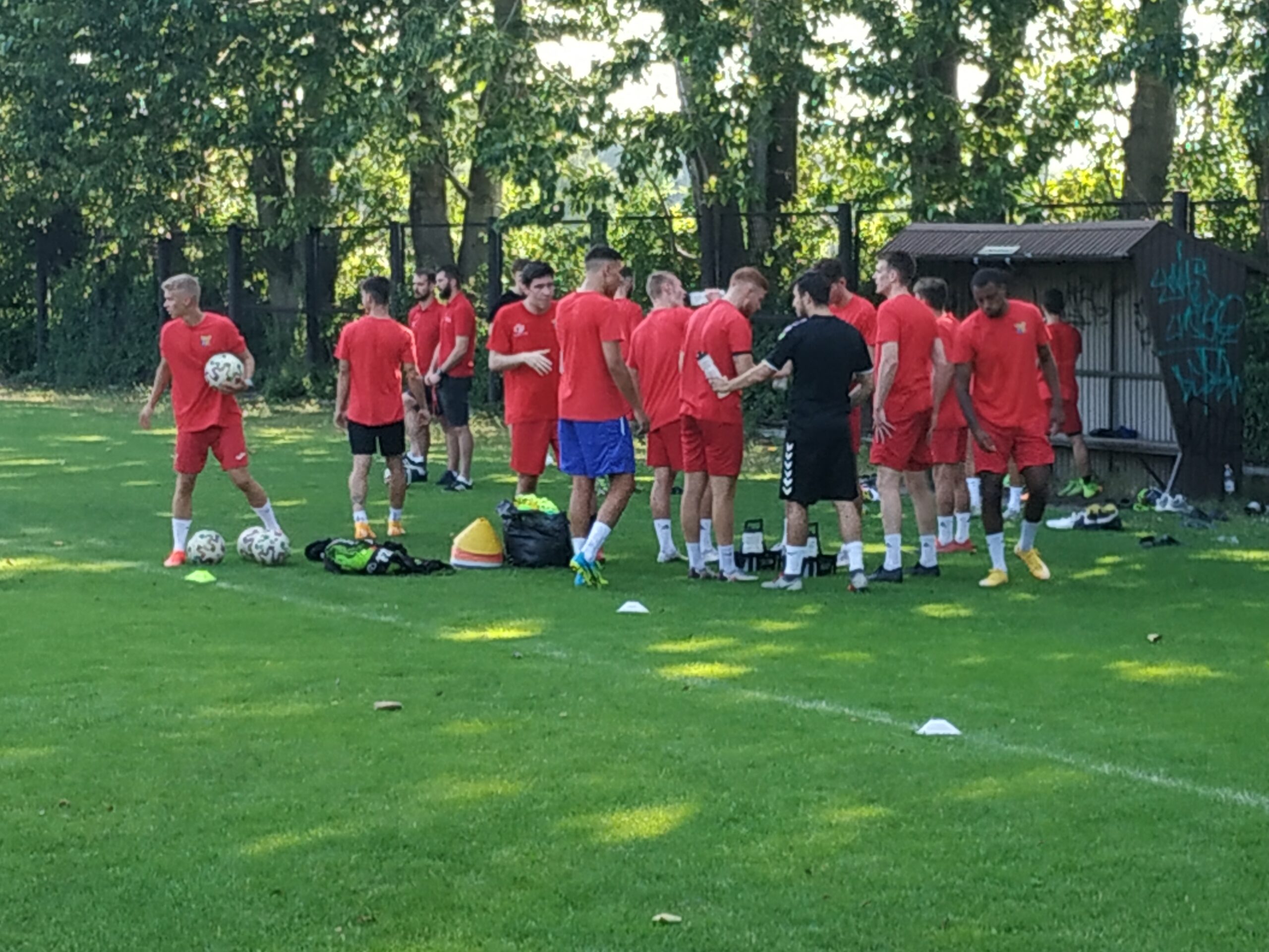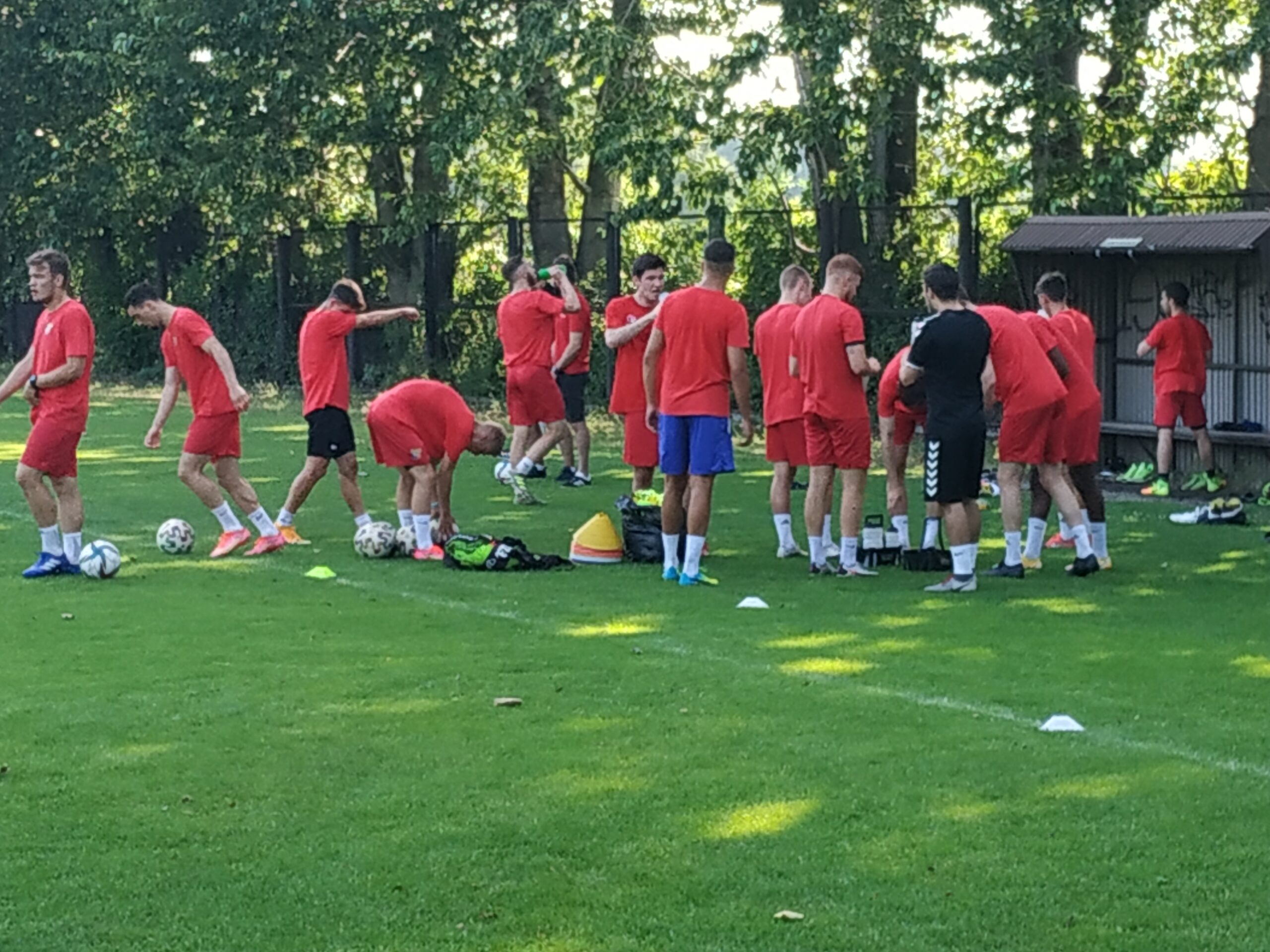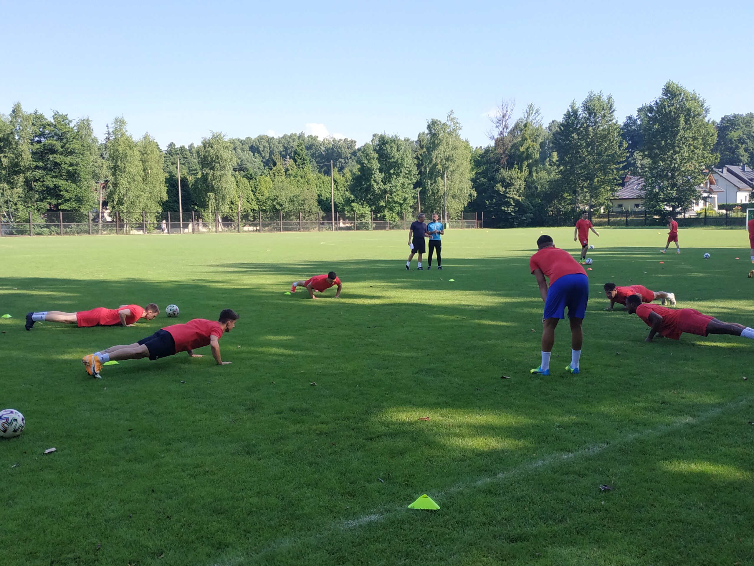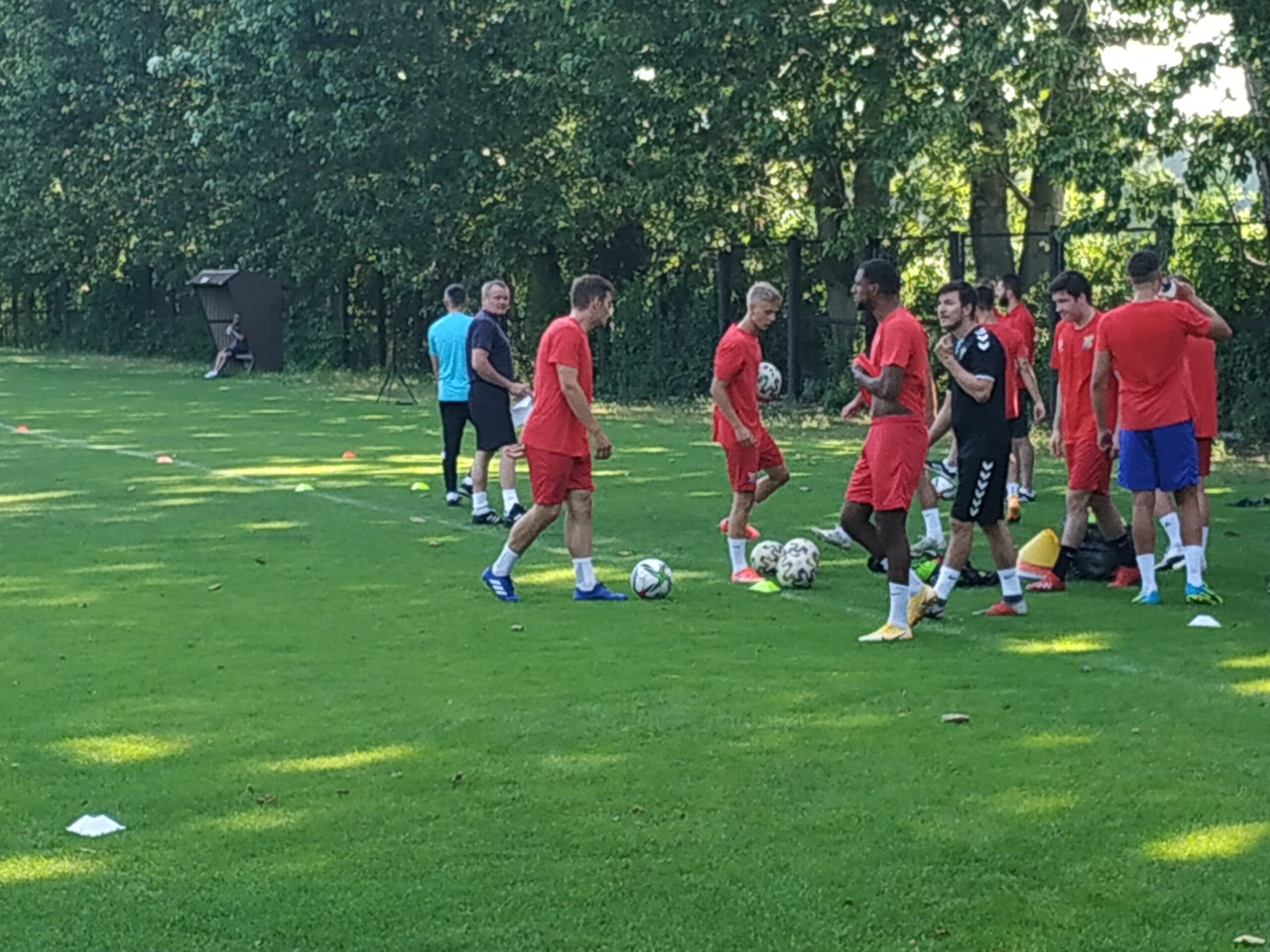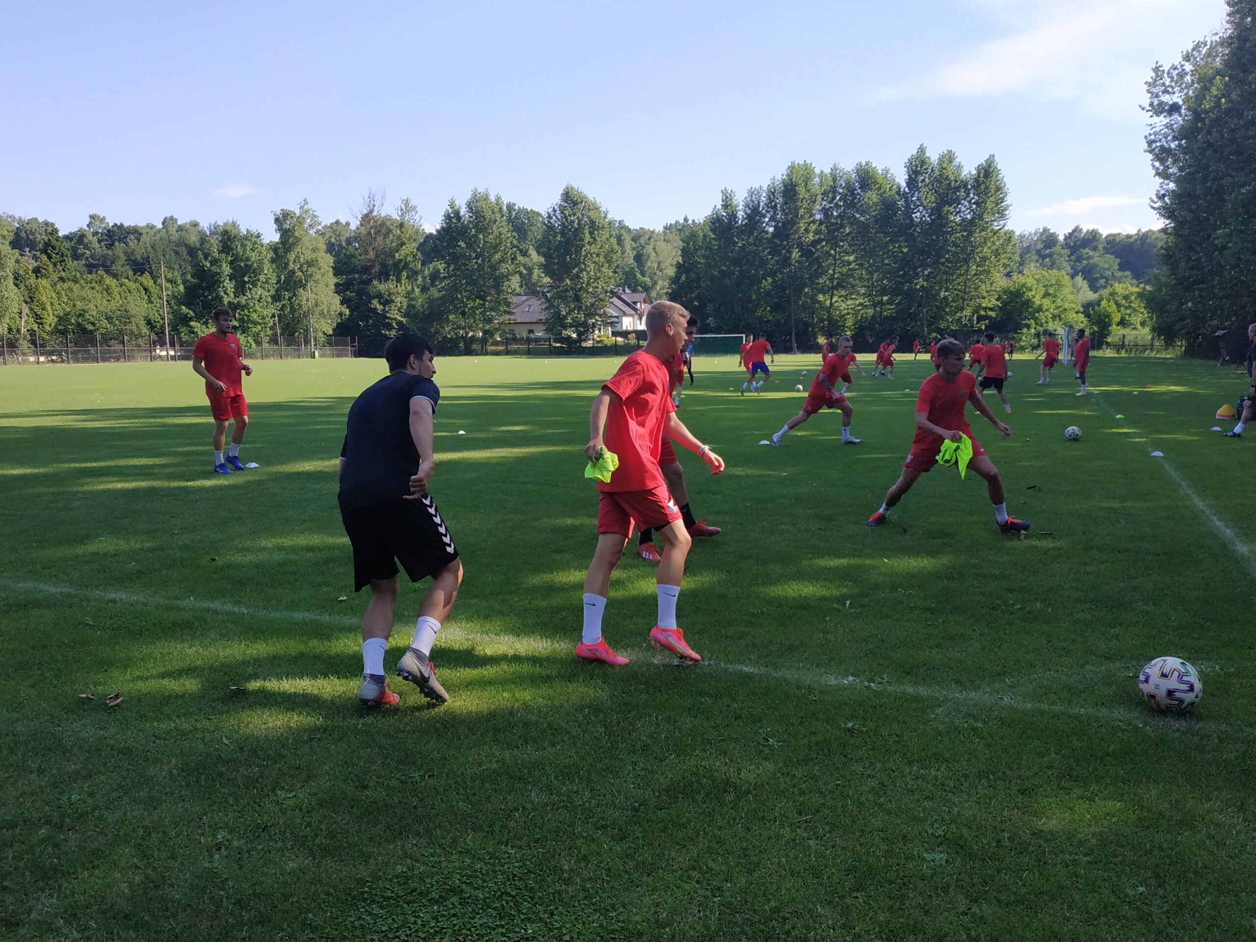 Nowy sezon zbliża się wielkimi krokami. Już 7 sierpnia piłkarze wybiegną na murawę i zainaugurują rozgrywki III ligi w sezonie 2021/22. Dziś popołudniu piłkarze Odry Wodzisław odbyli pierwszy trening po powrocie z urlopów. W dzisiejszej sesji treningowej wzięło udział 28 zawodników, w tym siedmiu bramkarzy. Na treningu obecnych było wielu zawodników, którzy w najbliższym czasie będą testowani w naszym klubie. Niebiesko-czerwoni tym samym rozpoczęli okres przygotowawczy, w którym oprócz jednostek treningowych, będą rozgrywali również mecze kontrolne. O terminarzu spotkań sparingowych będziemy na bieżąco informowali w naszych mediach społecznościowych. Zapraszamy do krótkiej galerii zdjęć, która znajduje się poniżej.